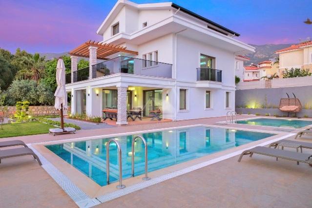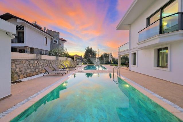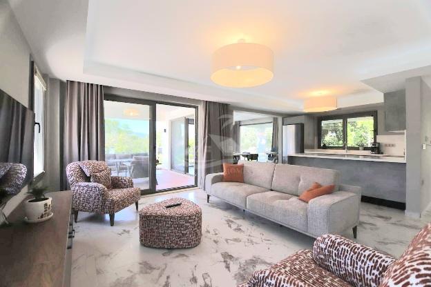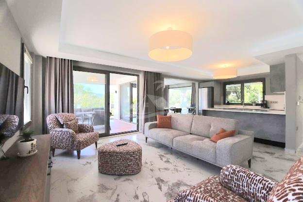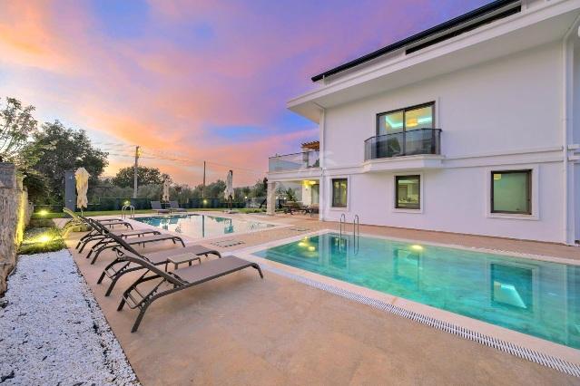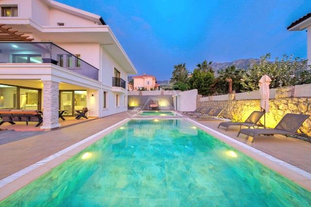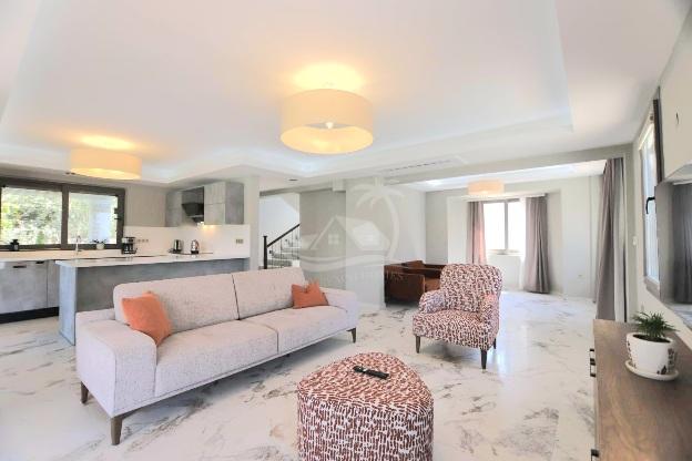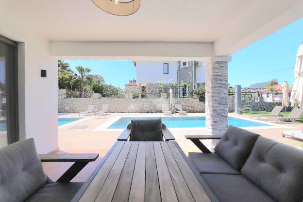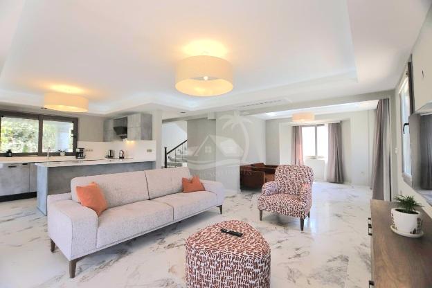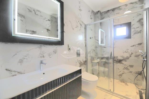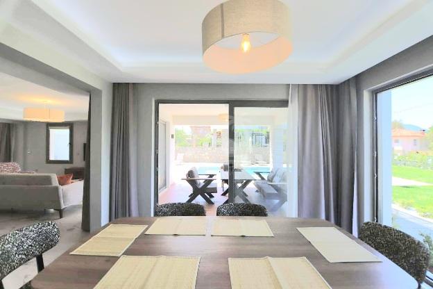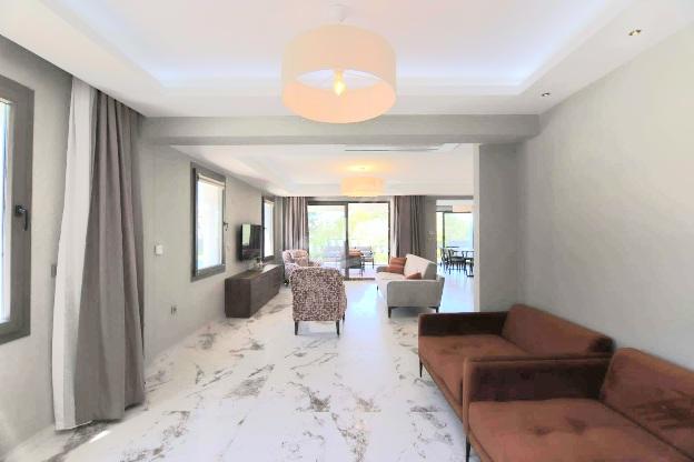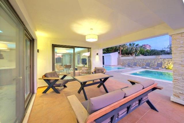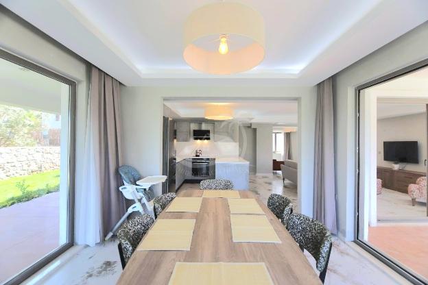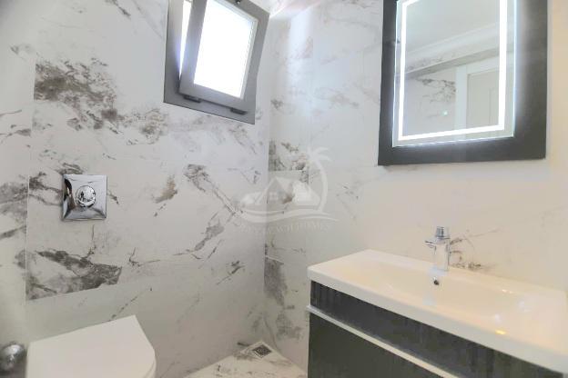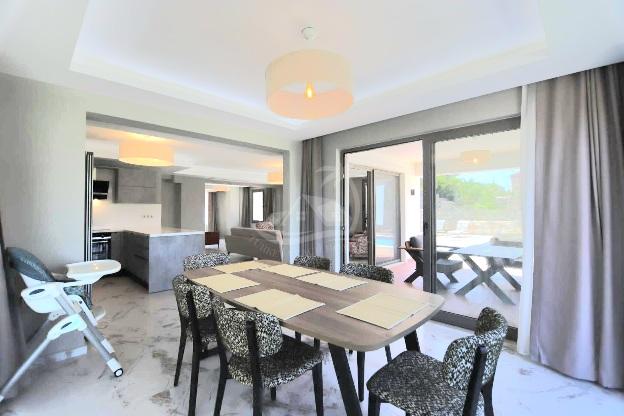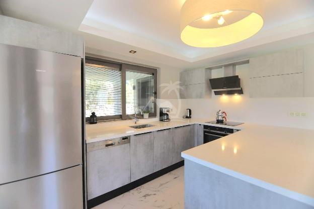 Inside the villa we have a large open plan 148 Sq meters living space on the ground floor. It has an ultra luxury kitchen, dining room, living room with all modern amenities and a guest toilet for easy access from the swimming pool.